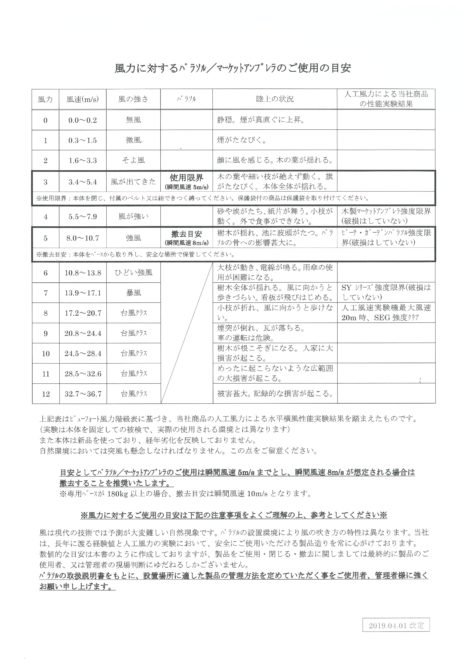 冬になると強風の日が多くなります。パラソル設置のお客様、これからお買い求めのお客様は参考にしてみてください。