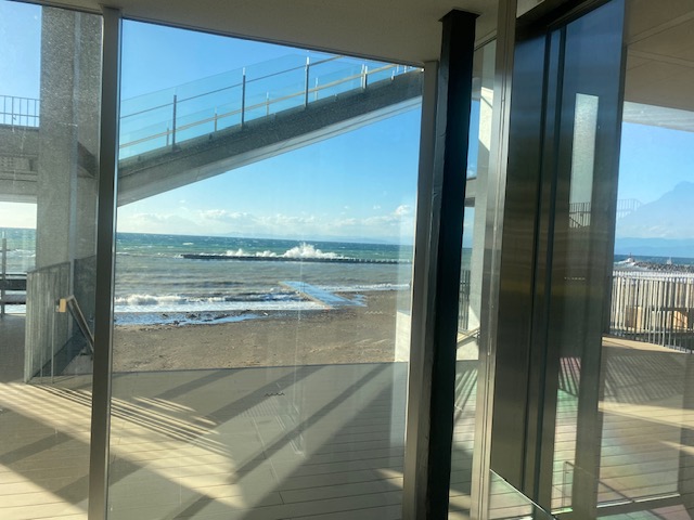 今年の7月にオープンしたみたいですが、平日であったせいかお客様もほとんどおらず海風が強く冷たい感じです。